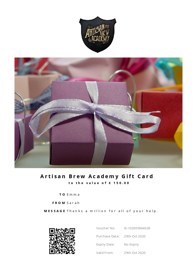 Artisan Brew Academy allows you to purchase instantly printable gift vouchers, special offers and tickets using the Voucher Connect platform.